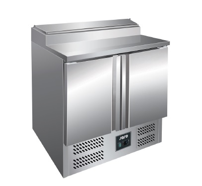 Profesionální chlazený pizza stůl nerezový - určeno pro skladování potravin a jako pracovní plocha, vhodné pro všechny gastronomické provozy. Pracovní plocha - hloubka 456 mm. Digitální regulace teploty (DIXELL). Ventilované chlazení. Automatické odmrazování. Chladivo: R600a. 5 x GN 1/6.