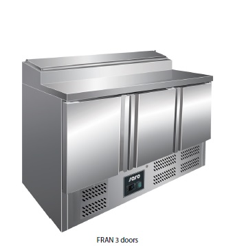 Profesionální chlazený pizza stůl nerezový - určeno pro skladování potravin a jako pracovní plocha, vhodné pro všechny gastronomické provozy. Pracovní plocha - hloubka 358 mm. Digitální regulace teploty (DIXELL). Ventilované chlazení. Automatické odmrazování. Chladivo: R600a. 7 x GN 1/3.