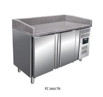 Profesionální chlazený pizza stůl nerezový - určeno pro skladování potravin a jako pracovní plocha, vhodné pro všechny gastronomické provozy. Pracovní plocha - granit. Digitální regulace teploty (DIXELL). Ventilované chlazení. Automatické odmrazování. Chladivo: R600a.
