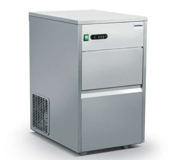 Profesionální výrobník ledu - vhodné pro všechny gastronomické provozy. Opláštění INOX, čeřidlový systém, bez odpadového čerpadla, chlazení vzduchem. Kapacita 26 kg/24 hod.