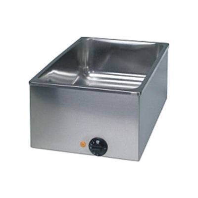 Vodní lázeň - pro GN 1/1 nebo 2 x 1/2 nebo 3 x 1/3. Nádoby s maximální hloubkou 150 mm.Dodáváno bez GN nádob. Vnitřní rozměry: 510 x 305 x 160 mm. Termostat do 100 °C.
