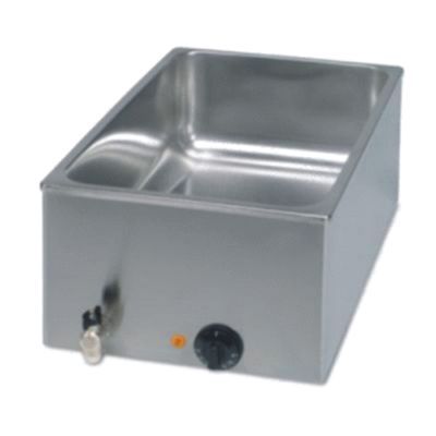 Vodní lázeň - pro GN 1/1 nebo 2 x 1/2 nebo 3 x 1/3. Nádoby s maximální hloubkou 200 mm.Dodáváno bez GN nádob. Vnitřní rozměry: 510 x 305 x 210 mm. Termostat do 100 °C. Výpustný kohout.
