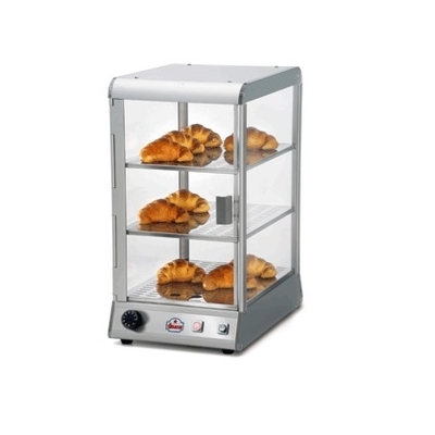 Profesionální vyhřívaná obslužná vitrína hliníková - určeno pro skladování potravin a prezentaci, vhodné pro všechny gastronomické provozy. Dvě patra, jedny dviřka. Vnitřní rozměr 280x380 mm. Malá vodní nádržka pro zvlhčování potravin.