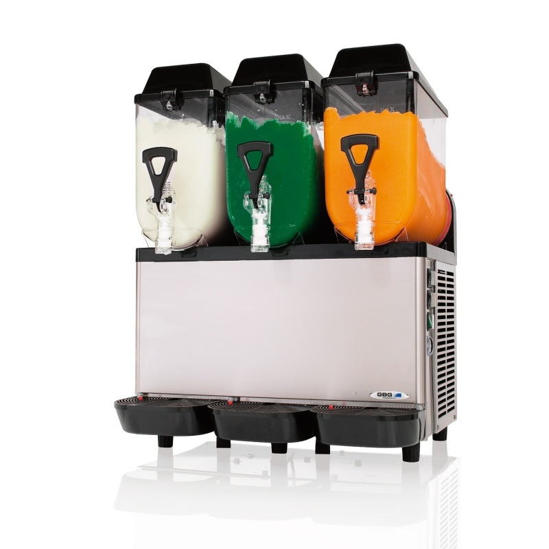 Výrobník ledové tříště, sorbetů, chlazených i mražených nápojů. Kapacita vany 3x10 lt.