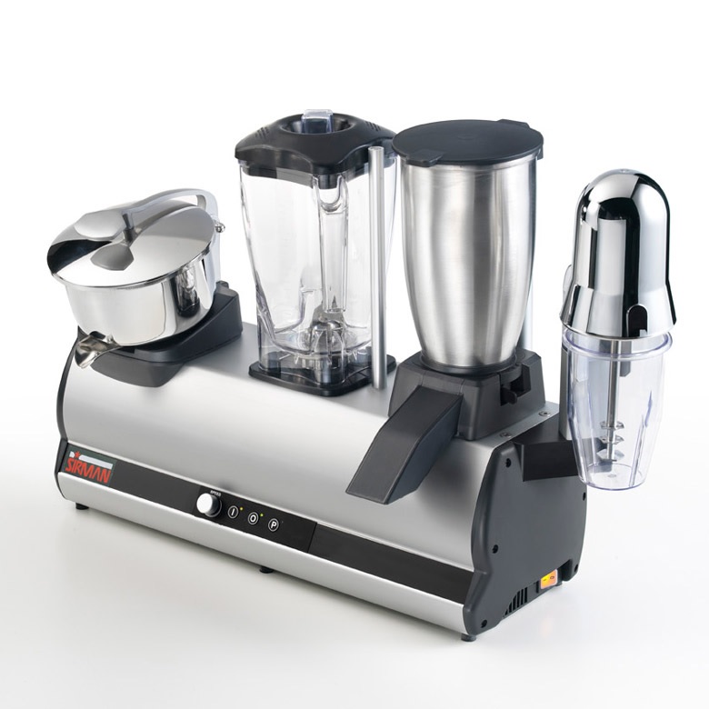 Barový kombinovaný robot - APOLLO LEVA (lis na citusy s pákou)+ORIONE Q (mixér hranatá nádoba)+NORDKAPP (drtič ledu)+SIRIO (shaker). Hliníkové tělo ABS boky. Ventilovaný motor.