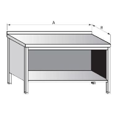 Stůl uzavřený s policí - tuhá celonerezová konstrukce se sendvičově provedenou vrchní deskou a zadním lemem v=40 mm. Nohy JEKL (40x40 mm), výškově stavitelné. Základní výška stolu je 850 mm. Na objednávku výška 900 mm bez příplatku.