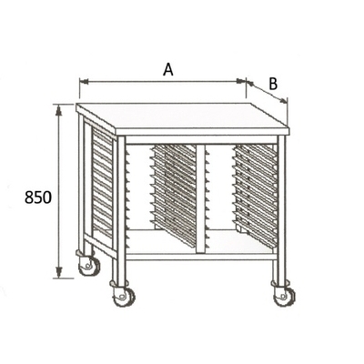 Vozík stolový - celonerezové provedení. Čtyři kolečka. Úložný prostor na 2x5 GN1/1.