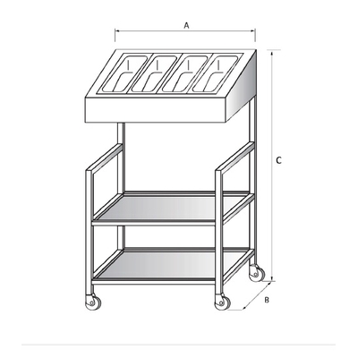 Příborní pojízdný uzavřený - celonerezové provedení, čtyři zásobníky. Dvě police.