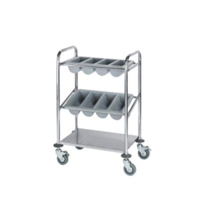 Vozík na příbory - nerezové provedení. Dvě patra na příborové zásobníky, jedna police.
