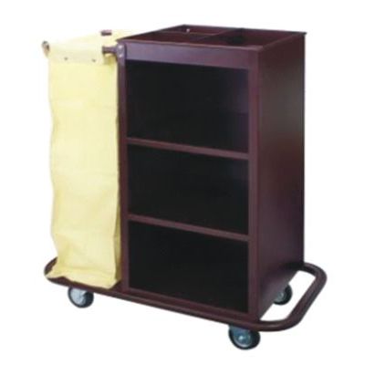 Vozík úklidový, pokojový. Tři police, tři misky. Vak na špinavé prádlo.