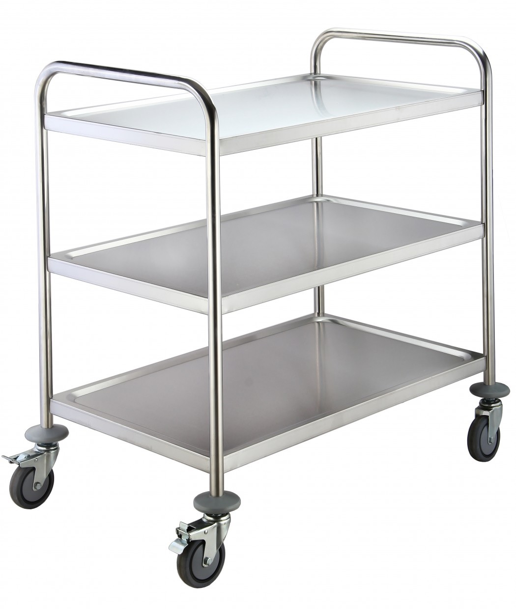 Vozík transportní - celonerezové provdení. 4 kolečka, nosnost 75 kg. Tři police. Zařízení dodáváno demontované.