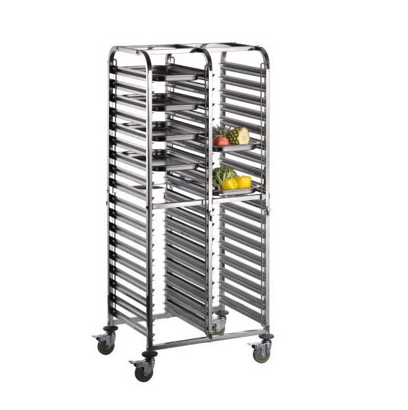 Vozík transportní - celonerezové provdení. 4 kolečka, nosnost 300 kg. 36 zásuvů 600 x 400 mm.